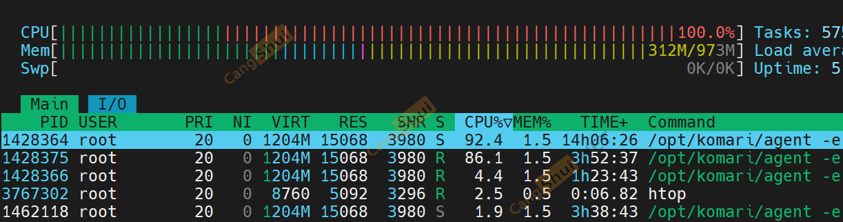 我的komari接入了20+台机器,但是问题在于其中三台机器,其中1C的机器会CPU直接100% 2C/4C的机器会占用30%~50%,使用htop看到agent进程在疯狂占用机器性能